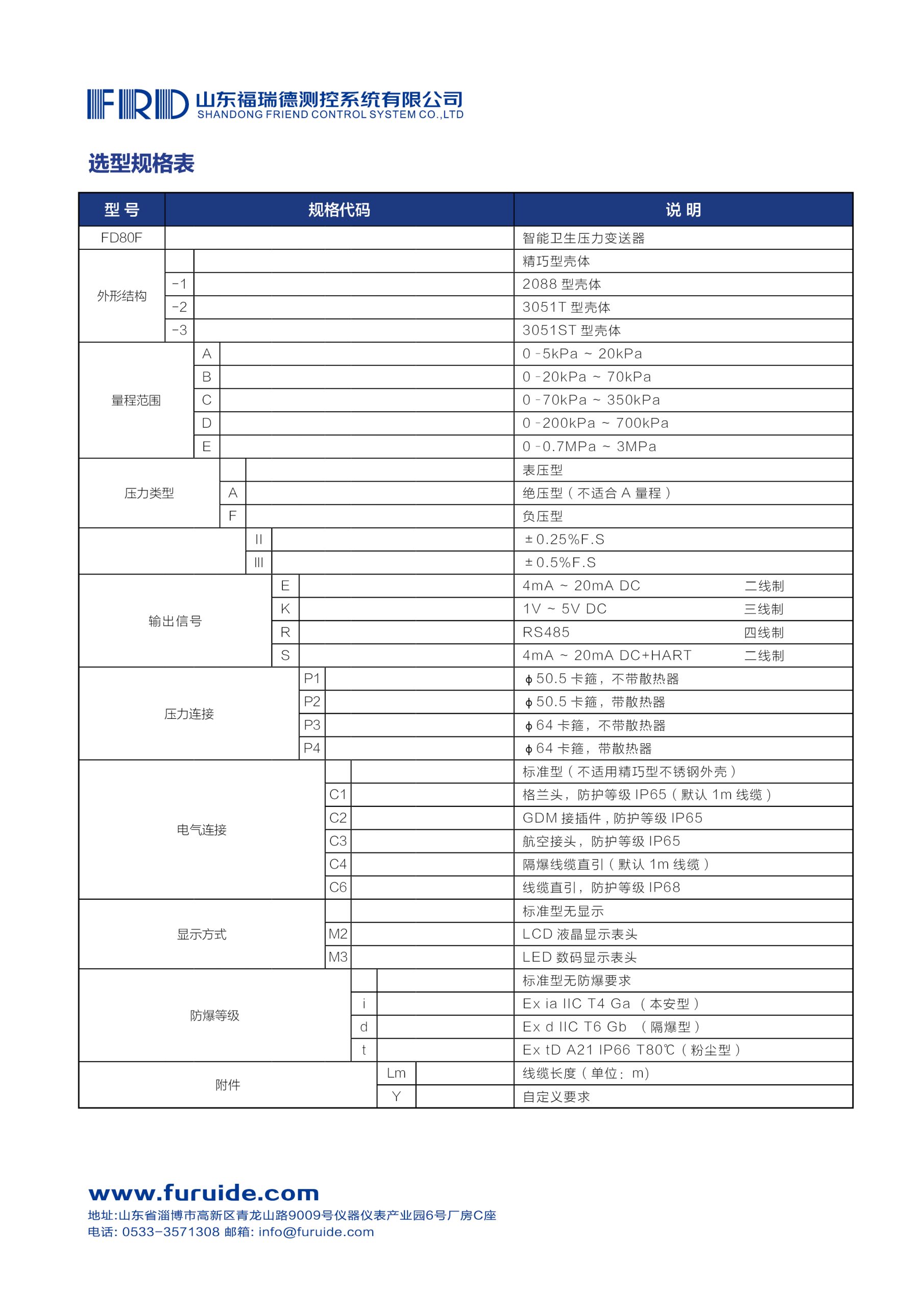 综合精度:0.1%f.s 0.25%f.s 0.5%f.s可选